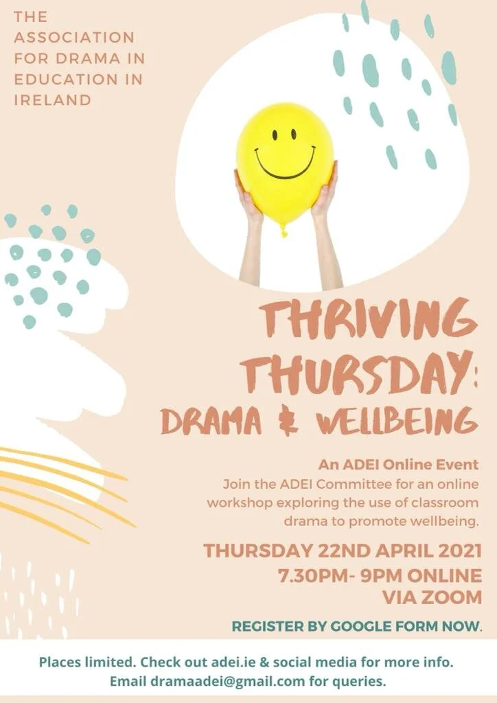 We are so excited to invite you to our next online event, ‘Thriving Thursday’. This event will be jam-packed with ideas and tutorials on how to explore emotions and wellbeing through drama at a time where we really need it - especially our children.